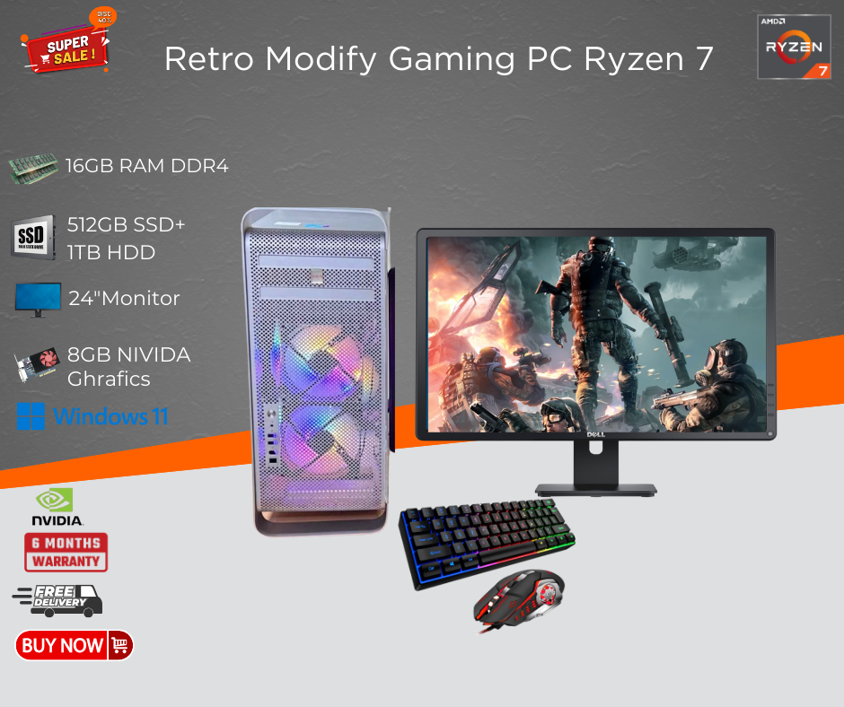 CPU: AMD Ryzen 7 (8 cores / 16 threads) for high gaming & multitasking performance.